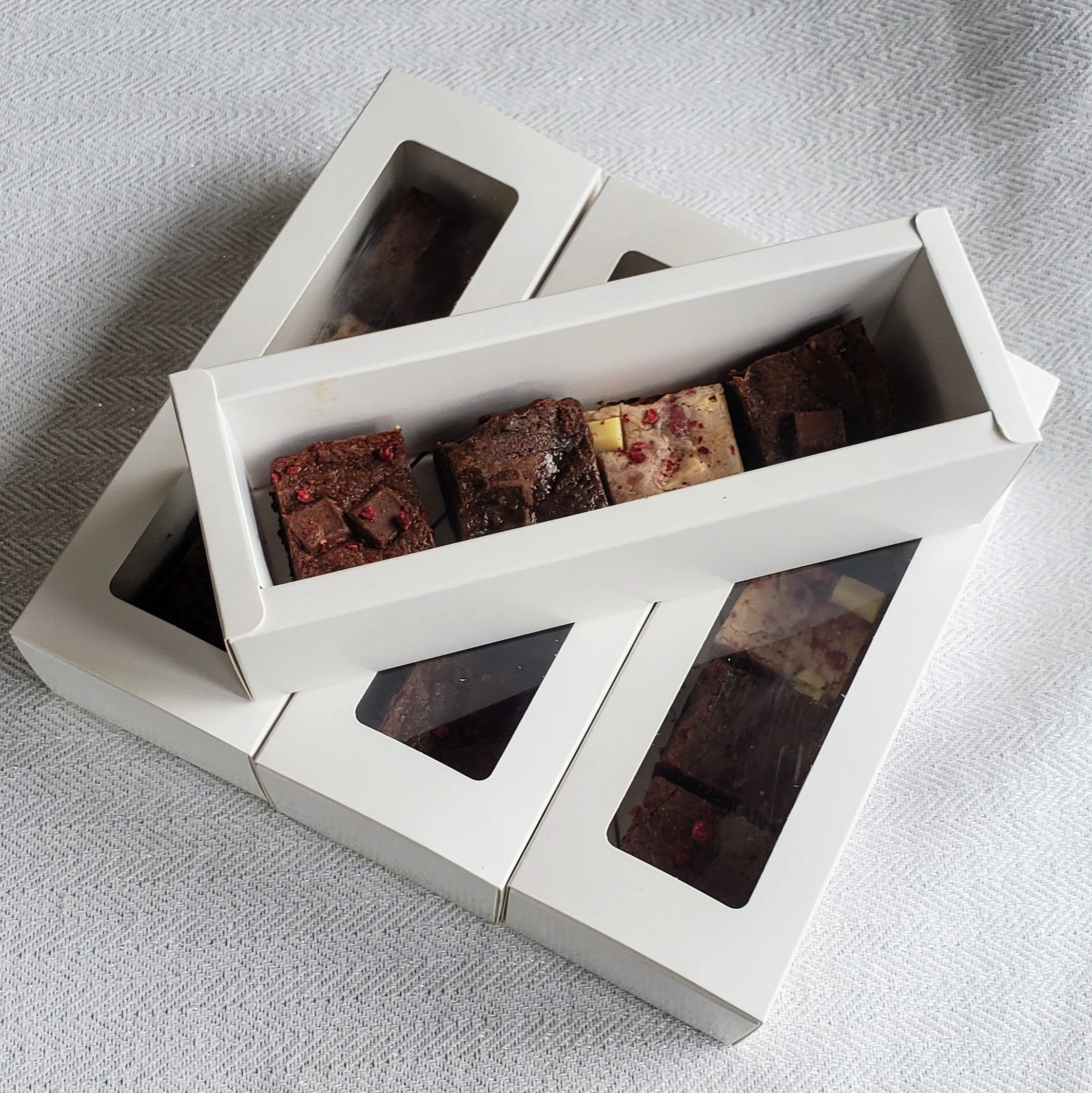 Our mini brownies and blondies come in a 1.5” x 1.5” size. Perfect for sharing or trying multiple flavors.